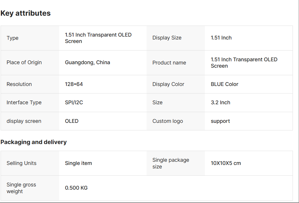 1.51 Inch Transparent OLED Screen 128*64 Resolution Display Monitors With Expansion Board SPI/I2C Interface Blue Display