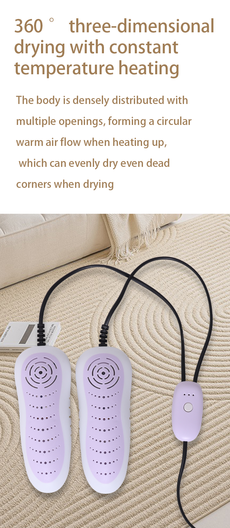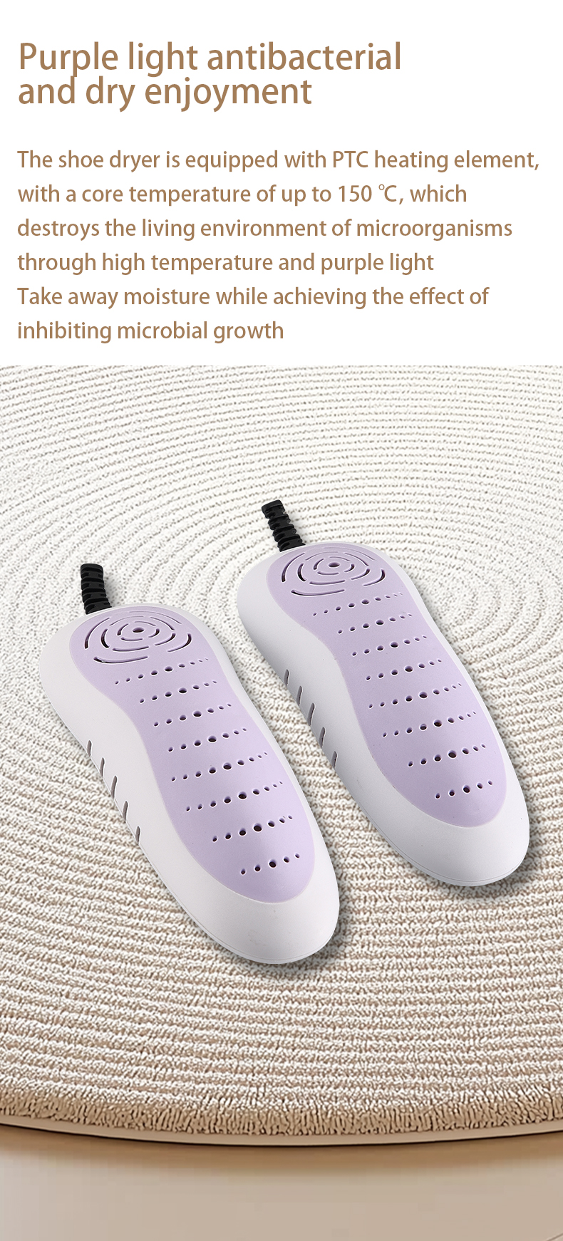 3, do not press the power cord under the shoe dryer in use, so as not to damage the leakage.