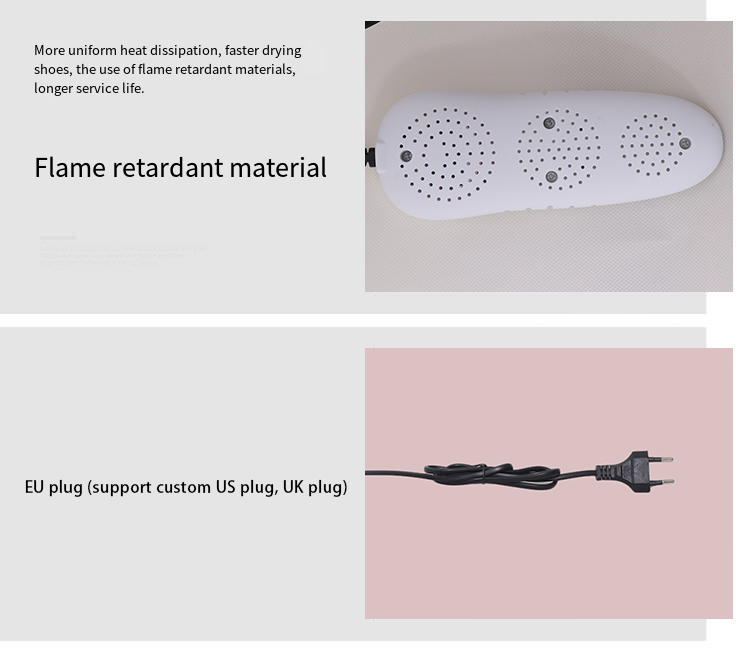 2, the plastic shell temperature is high, do not touch the skin to avoid burns, do not let children play or use the shoe dryer.