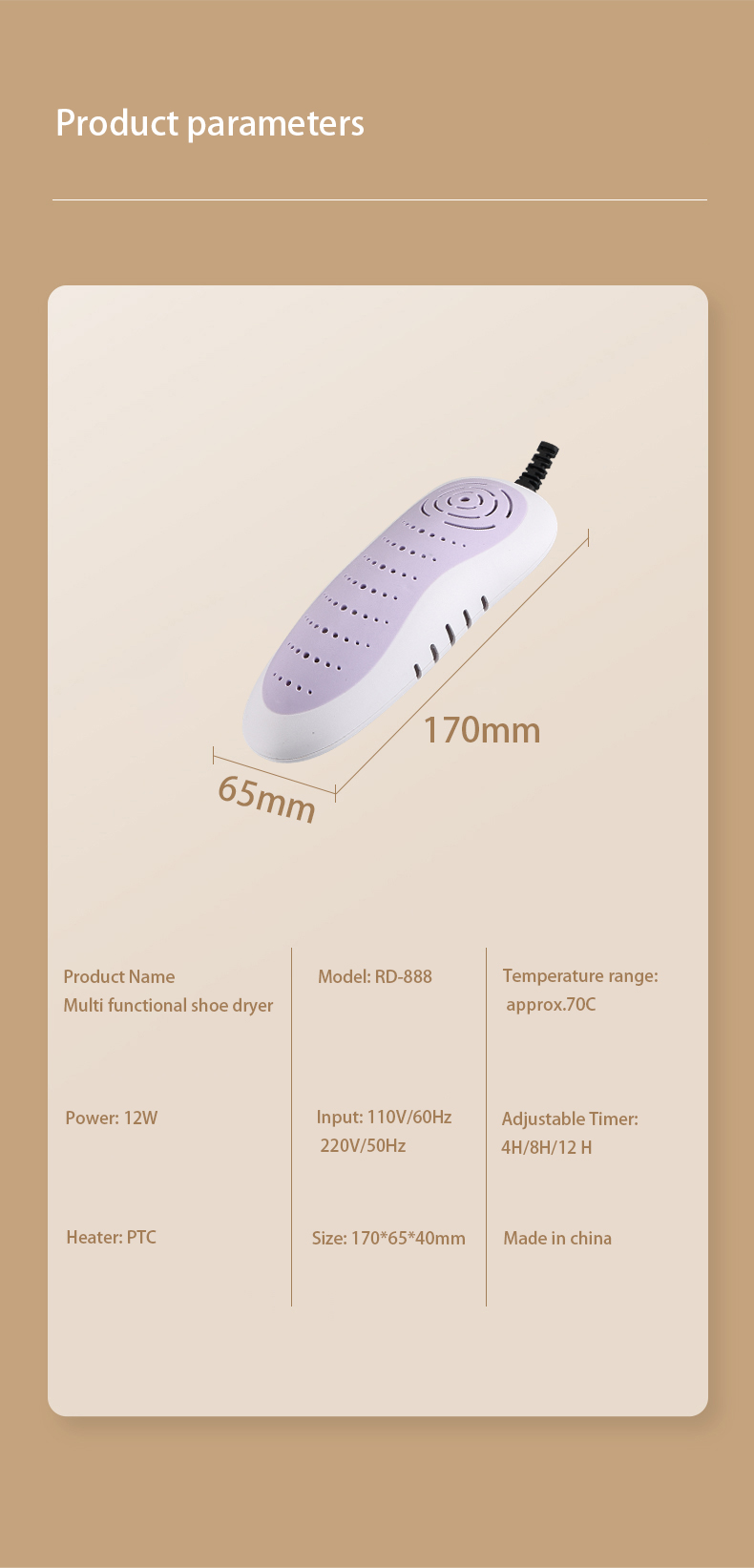 | Product name | Electric Shoe Dryer |