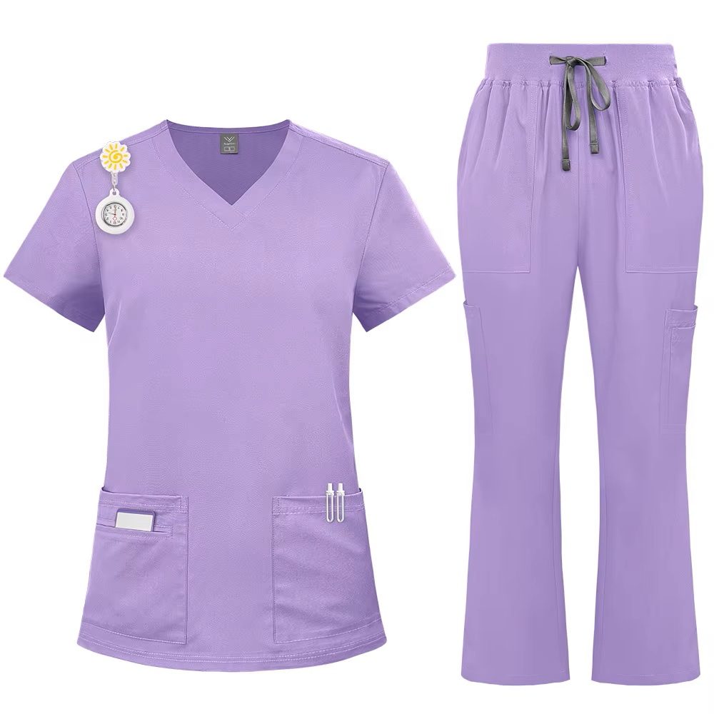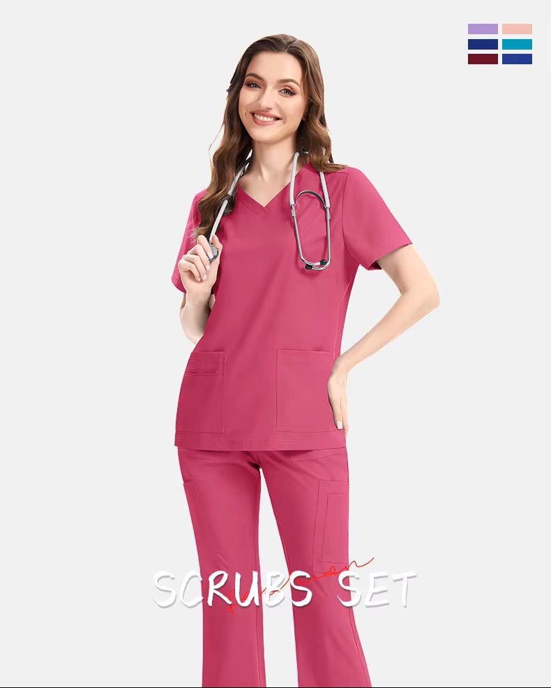 2025 New Nurse Uniform for Women Hospital Uniforms Bell-bottomed Pants Scrubs Sets Culottes V-neck Spandex Polyester Fabric