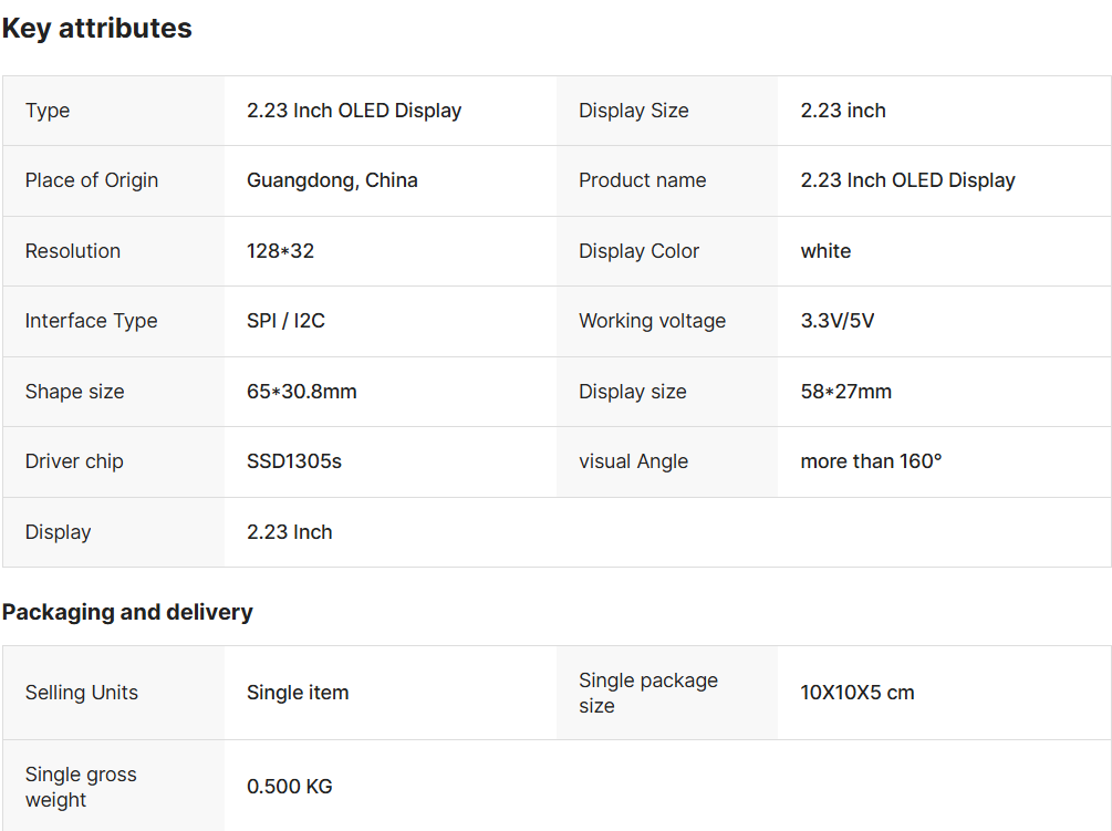 | communication interface | SPI / I2C | resolution ratio | 128*32pixels |