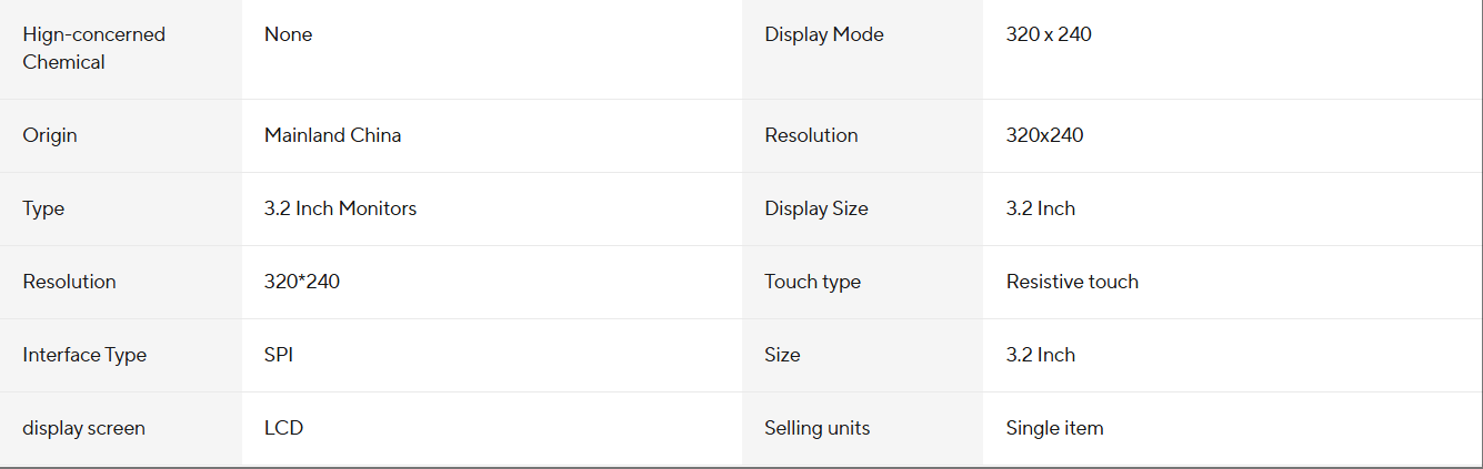 3.2 Inch Monitors Resistance Touch Screen For Raspberry Pi 320 x 240 SPI Lcd Display