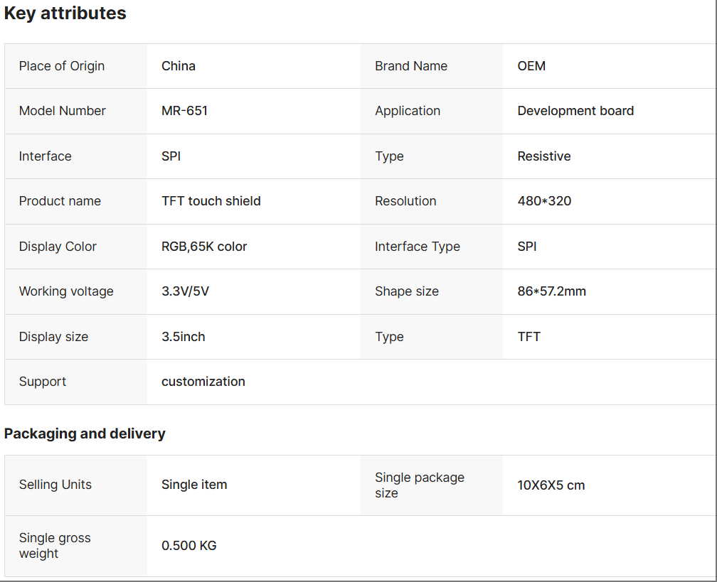 3.5-Inch LCD Display TFT Touch Shield LCD Controller TFT Resistive Touch Screen Monitor 480*320 Resolution