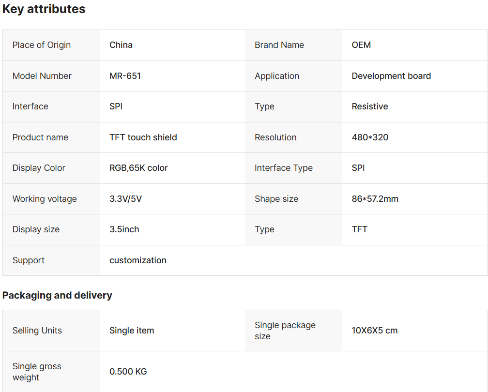 3.5-Inch LCD Display TFT Touch Shield LCD Controller TFT Resistive Touch Screen Monitor 480*320 Resolution