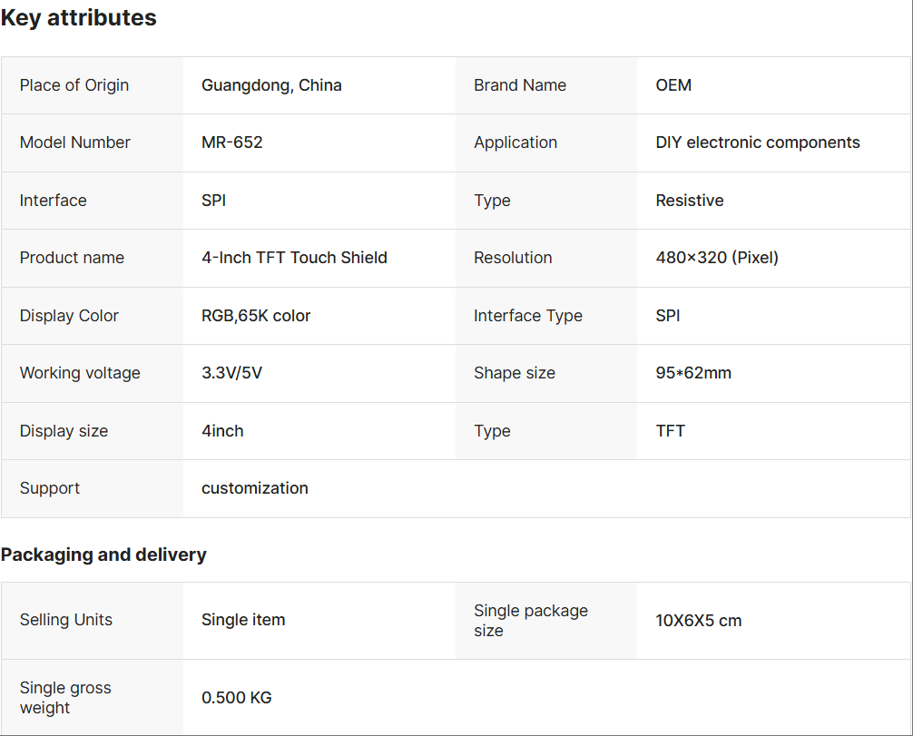4-Inch TFT Touch Shield LCD Display Controller TFT Resistive Touch Screen Monitor 480*320 Resolution
