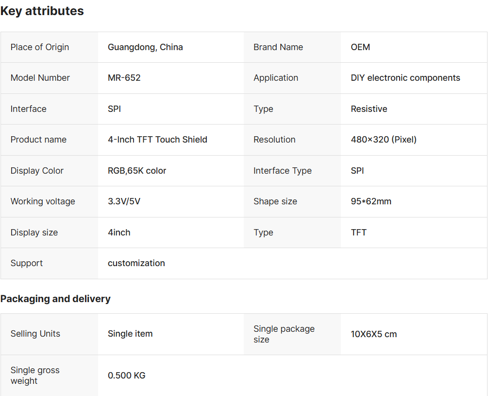 4-Inch TFT Touch Shield LCD Display Controller TFT Resistive Touch Screen Monitor 480*320 Resolution