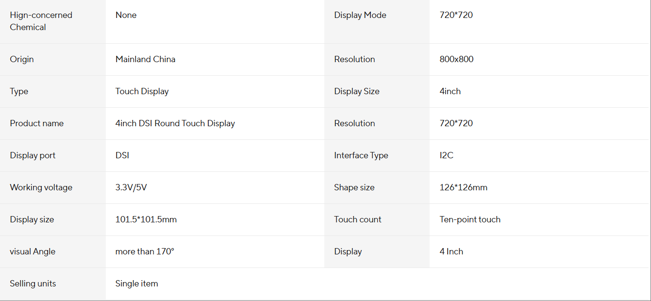 4Inch DSI Round Touch Display LCD Monitor 720*720 Pixels IPS 10-Point Touch Supports Raspberry Pi