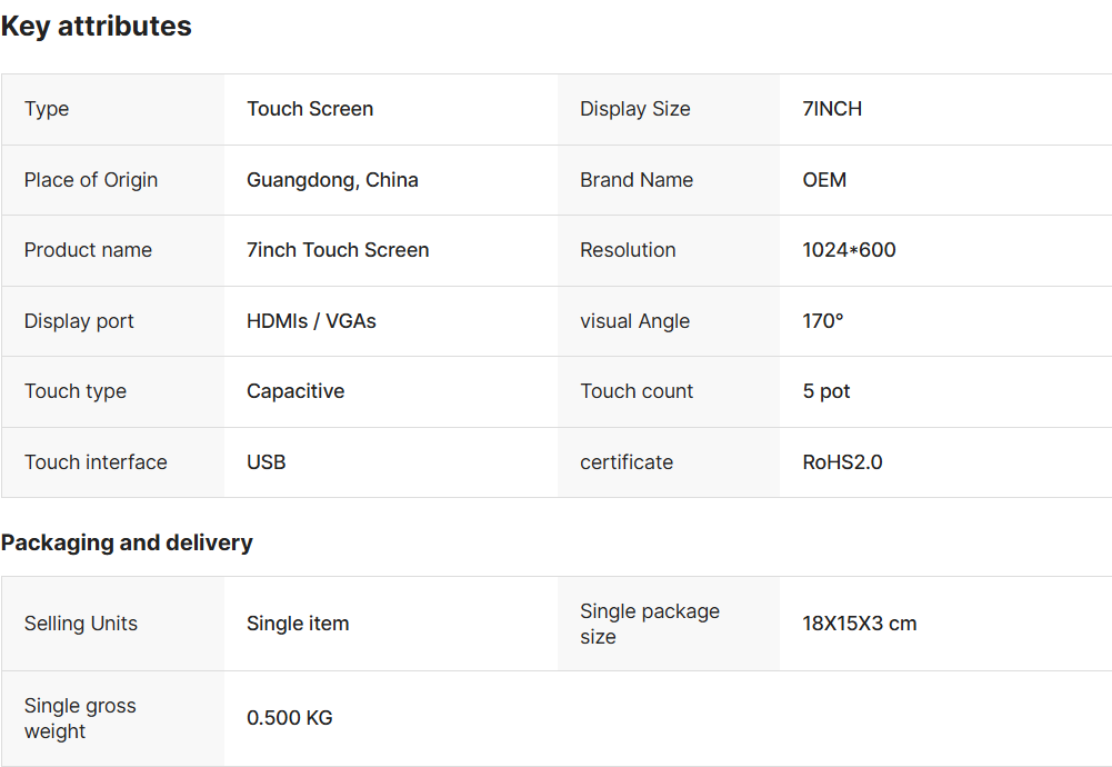 7inch Touch Screen LCD Module USB Capacitive Touch Display 1024*600 Pixels IPS Monitor