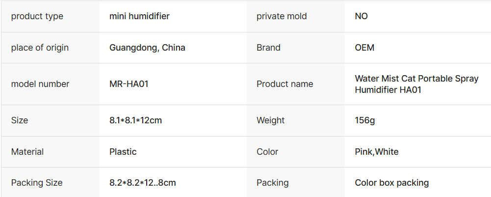 | Product Name | Water Mist Cat Portable Spray Humidifier HA01 |
