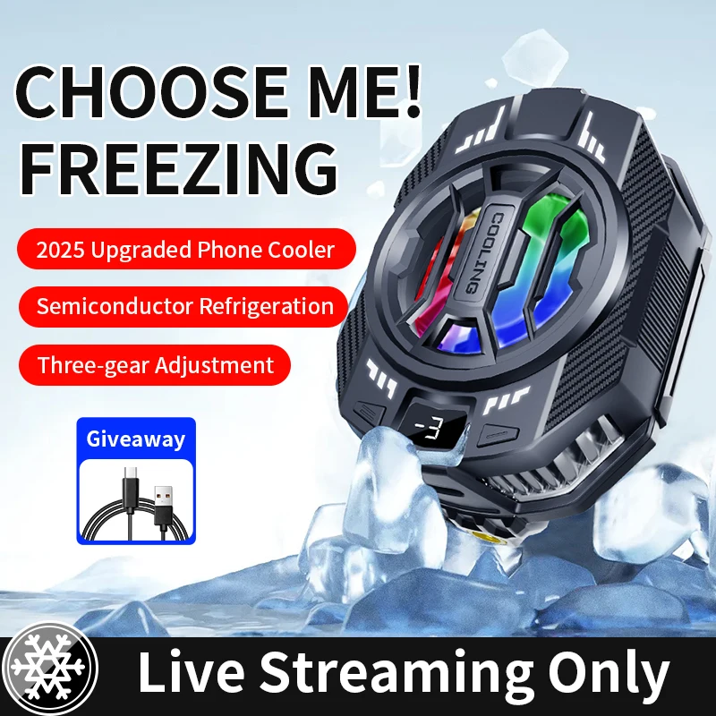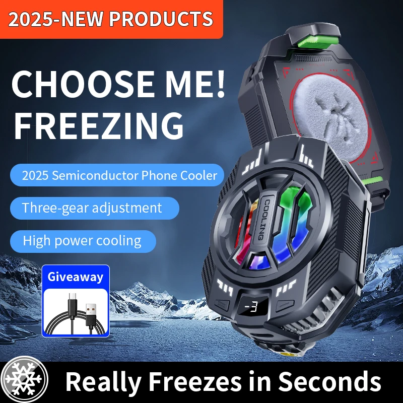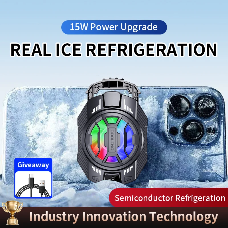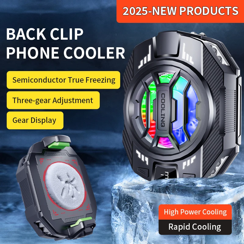 Mobile Phone Radiator Semiconductor 2025 New Back-Clip Phone Cooler Three-Speed Adjustment 15W Phone Cooler for Gaming
