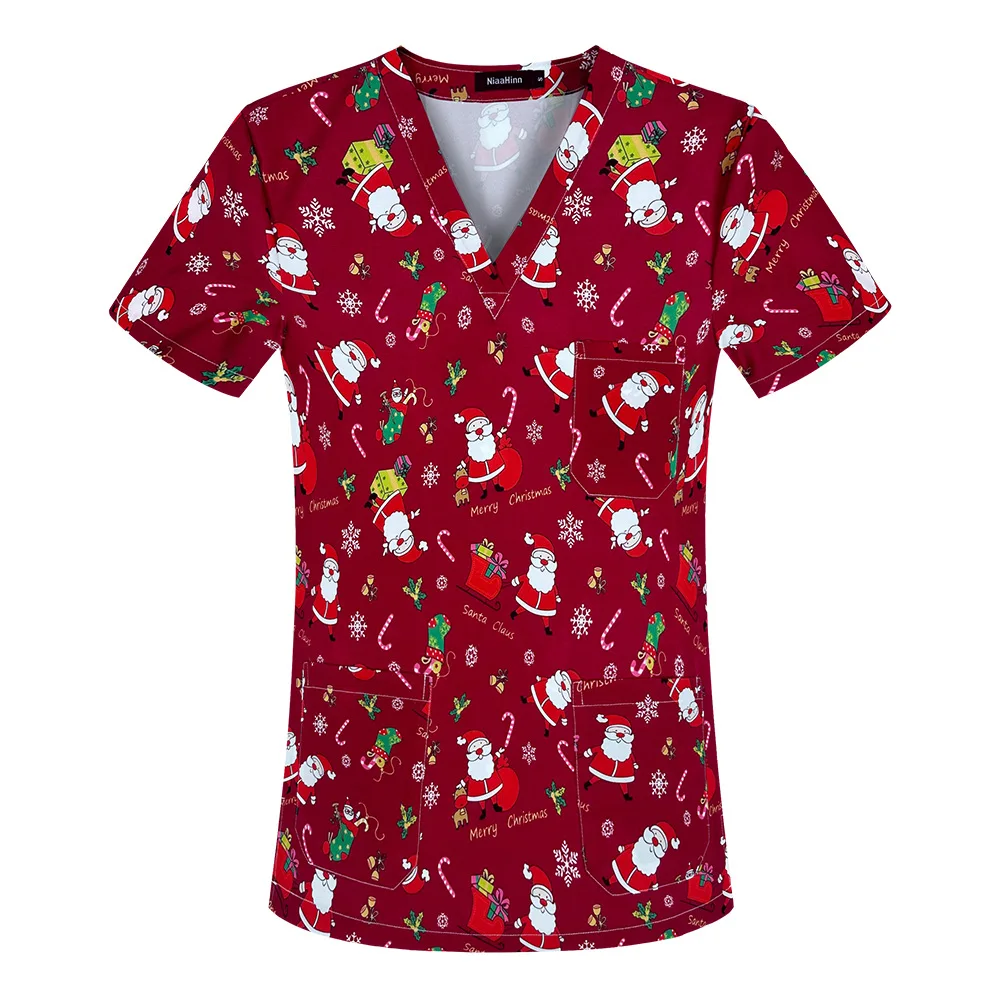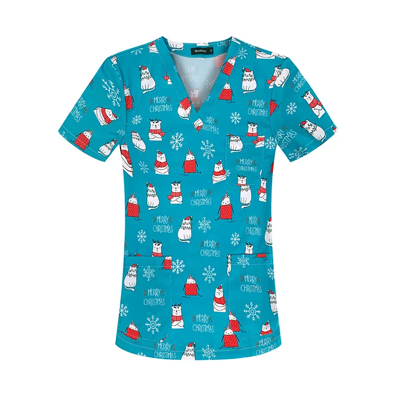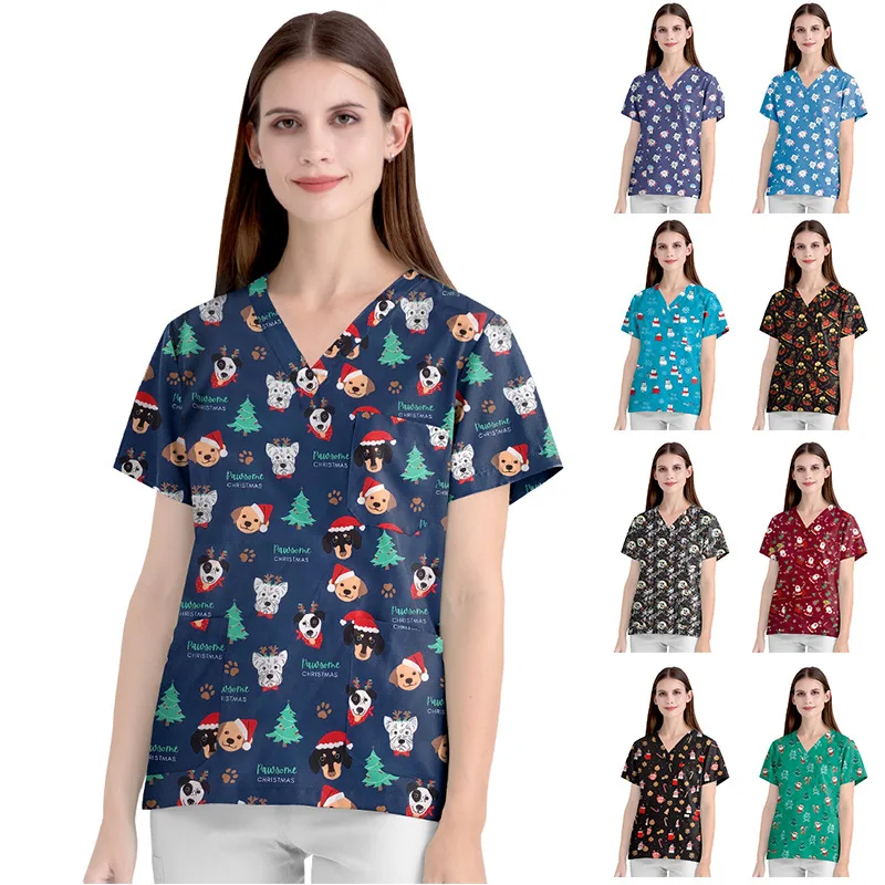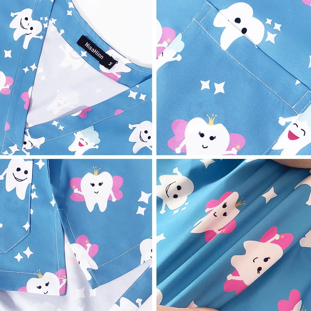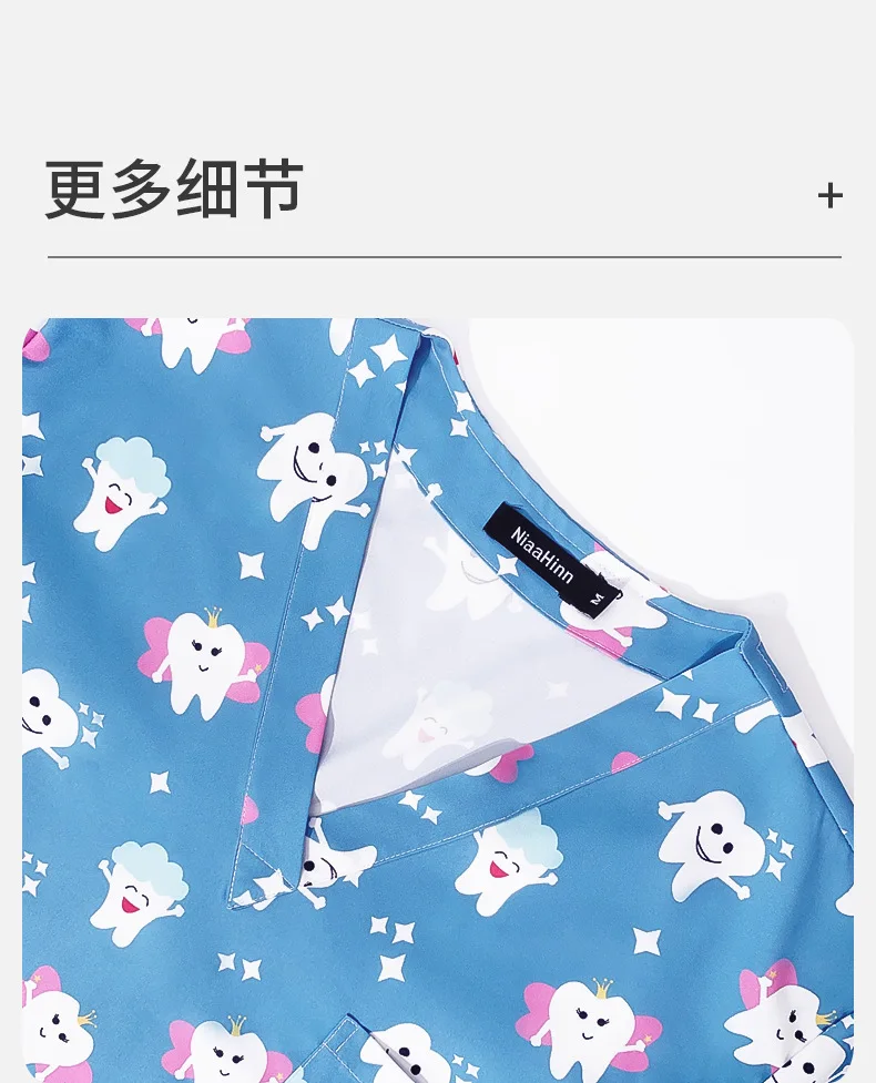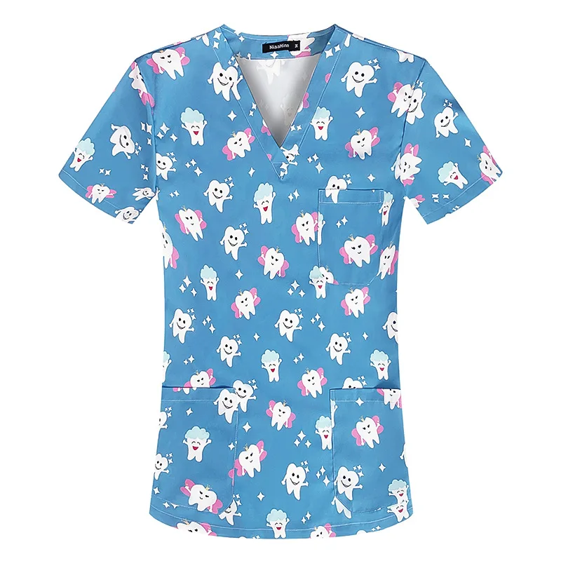 New Nursing Uniforms Tops for Hospital&private Clinics&beauty Salons With V-neck Floral Printed Short Sleeves Women Scrubs