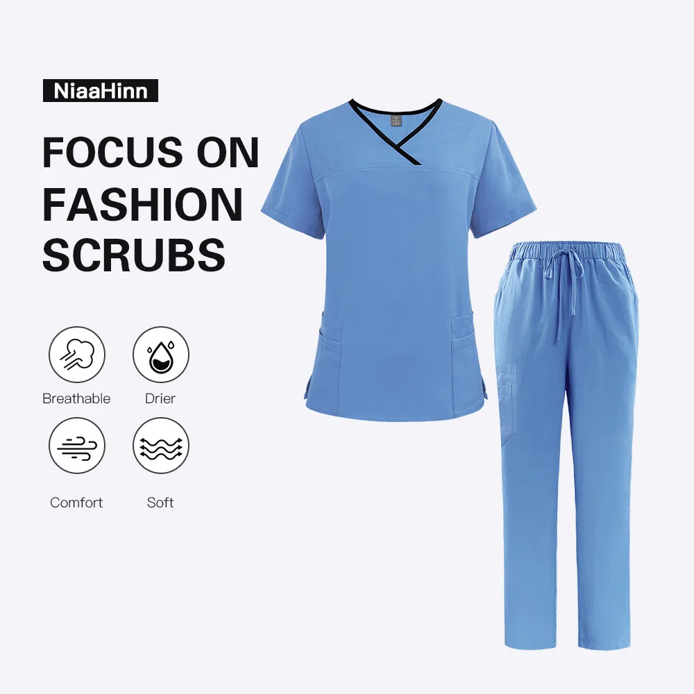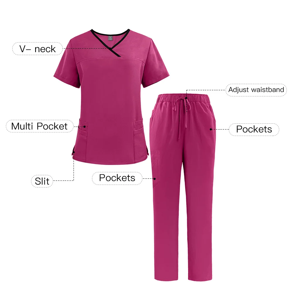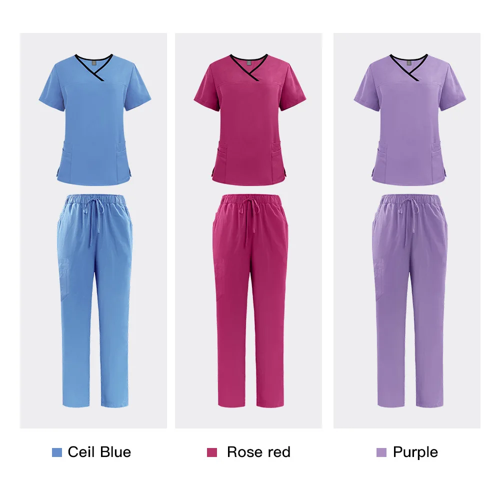 This nurse uniform with a fashionable design is tailored for women working in hospitals, clinics, and medical centers. It features a breathable polyester fabric blend that provides flexibility and ease of movement throughout demanding shifts. The scrubs medical uniform includes a short-sleeve V-neck top combined with regular-length bottoms, designed to accommodate diverse body shapes with sizes from S to XXL. Available in a broad color range, these scrubs deliver both professional style and practical comfort, ensuring you feel confident and cool during long hours. Ideal for nurses seeking functional yet stylish healthcare scrubs uniform options.