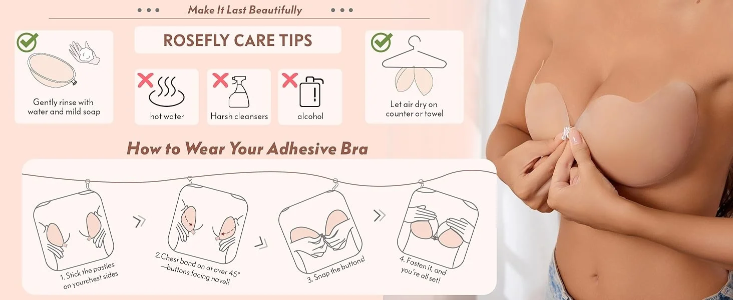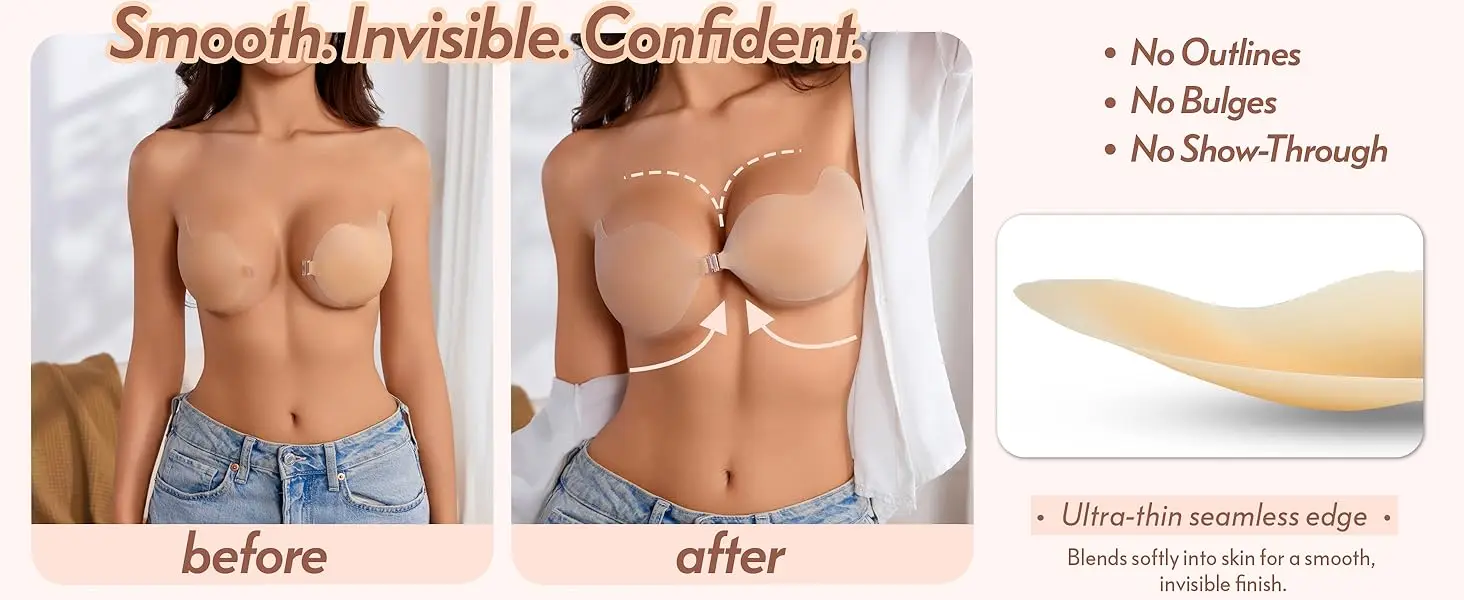 Push up Strapless Bra for Women Backless Sticky Bra for Enhanced Cleavage & Deep V Reusable Adhesive Bra