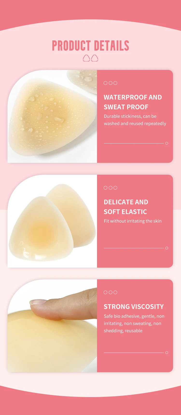 Reusable silicone nipple pasties, triangular adhesive, invisible coverage design, suitable for women's collarless tops.