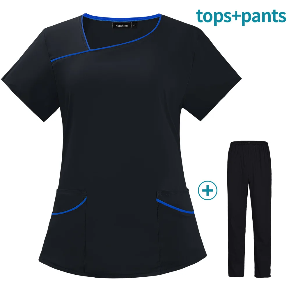 Muren's uniform scrubs are crafted from a high-quality polyester-spandex blend, ensuring maximum comfort during extended work hours. The fabric's moisture-wicking properties keep you dry and comfortable, even in demanding environments. These nurse uniform scrubs are ideal for healthcare professionals working in hospitals, dental clinics, or beauty salons, providing both style and practicality.