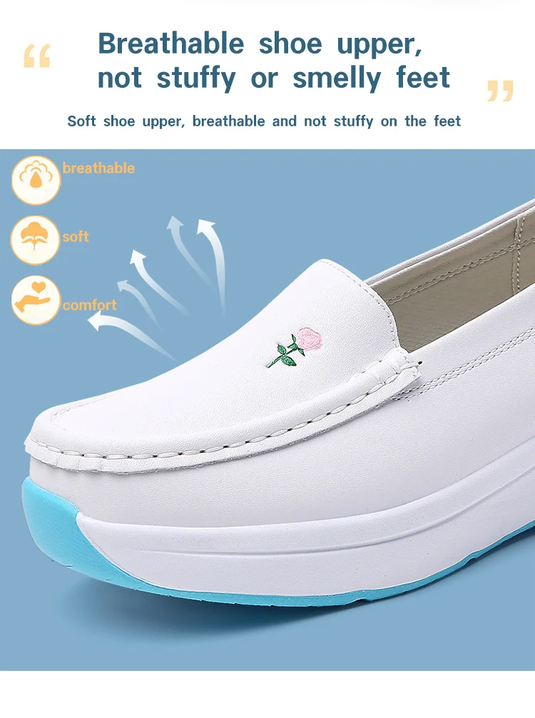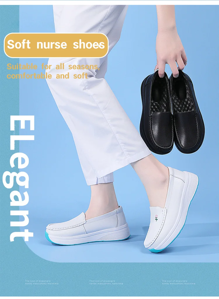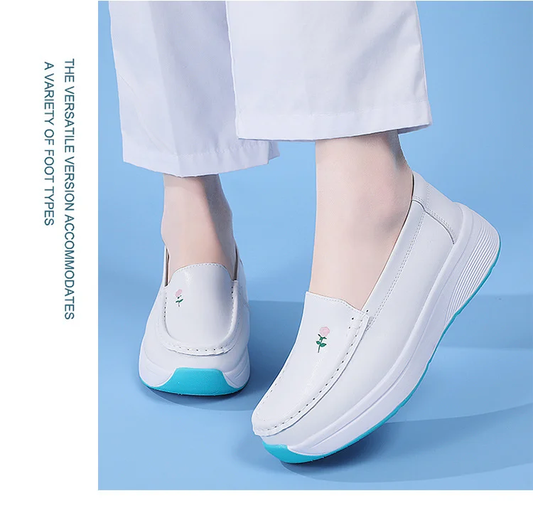 Scrubs Nurse Shoes Store Women's White Nursing Scrubs Shoes for Hospital Comfortable Breathable Flat Anti-slip Nurse Work Safety Shoes Printed Leather White Shoes Best Nurse Shoes Popular Nurse Shoes Womens Anti-slip Nurse Shoes Best Shoes for Nurse