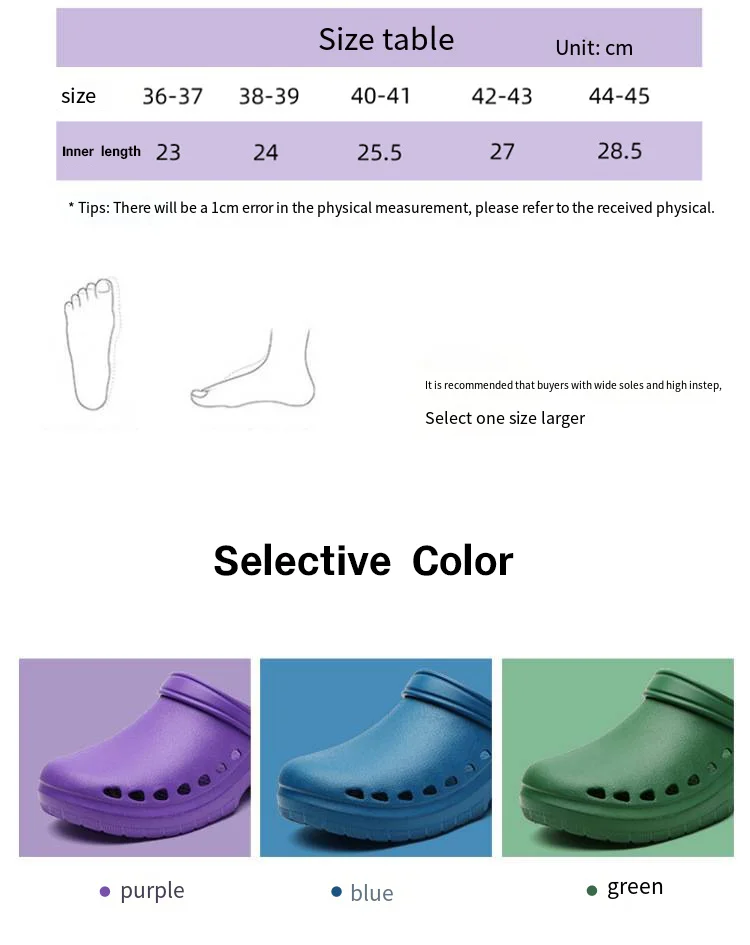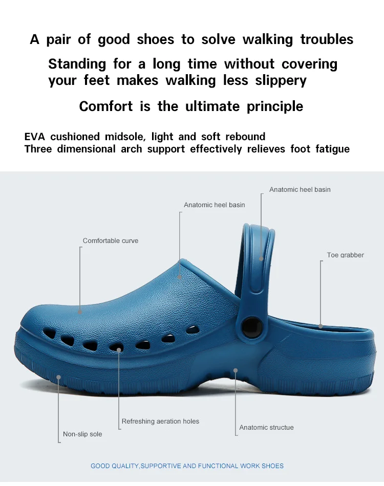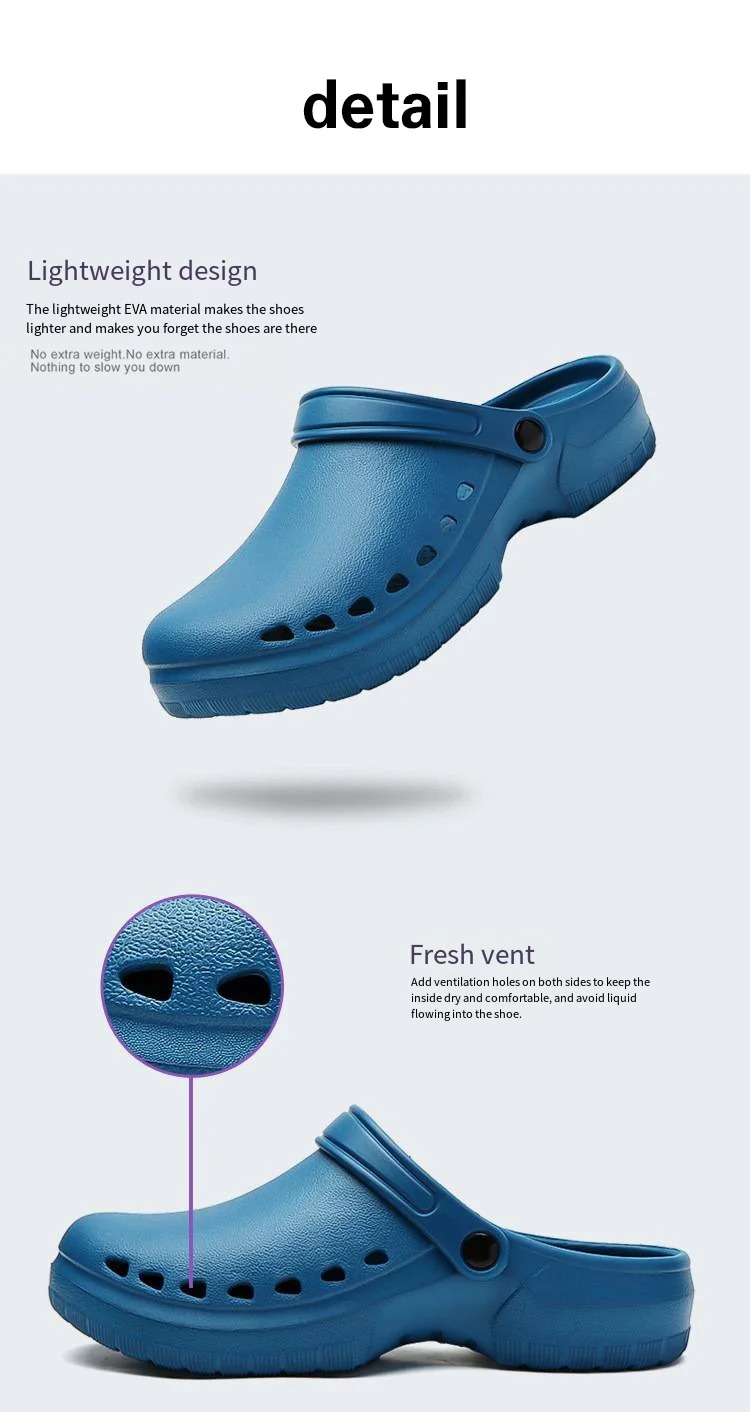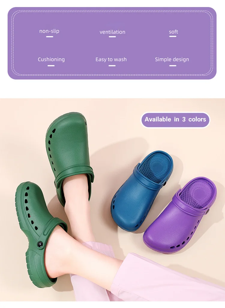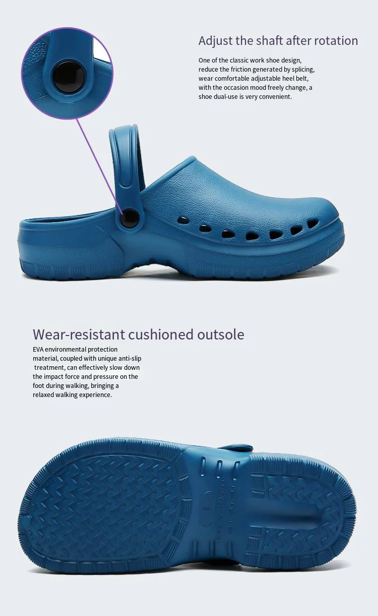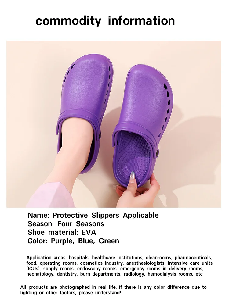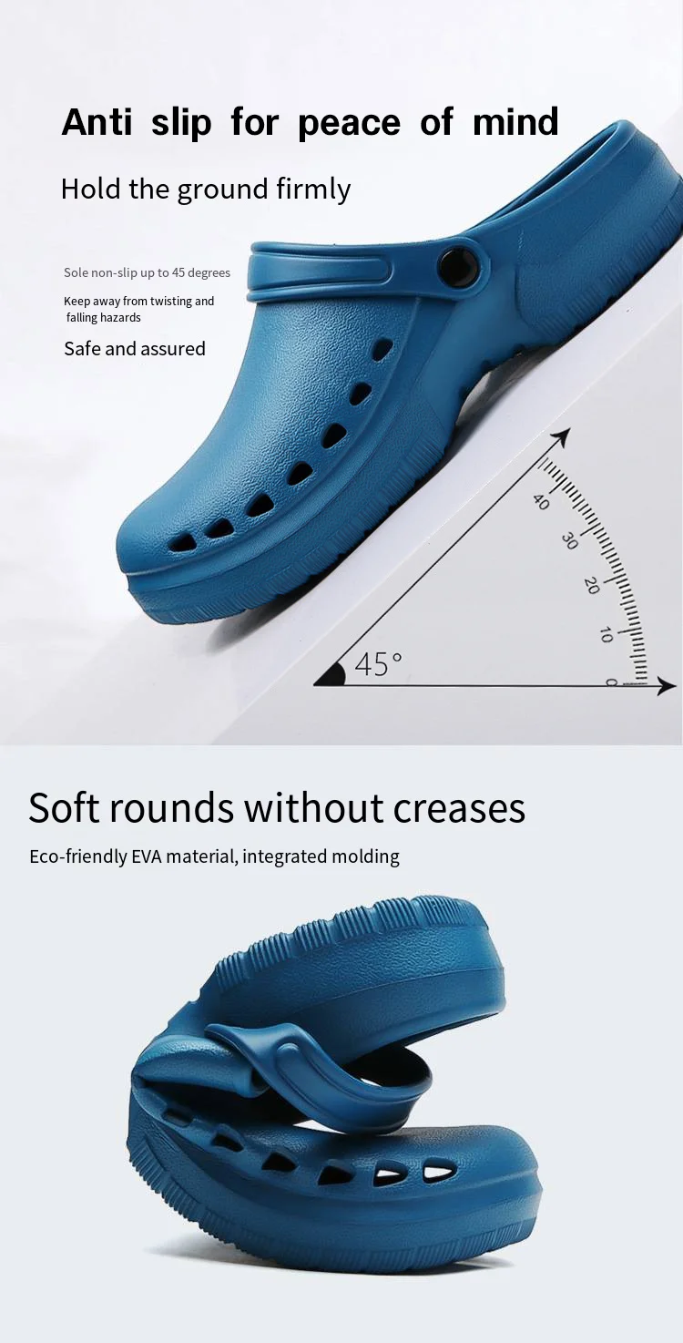 Constructed using high-quality EVA, these slippers deliver exceptional cushioning combined with a durable, wear-resistant design. The non-slip sole enhances safety by providing grip on wet or polished floors commonly found in hospital wards and prep areas. Technical specifications include broad size ranges and color options tailored for comfort and hygiene maintenance. The breathable construction also helps reduce sweat accumulation, contributing to foot health and overall comfort during extensive hours on duty.