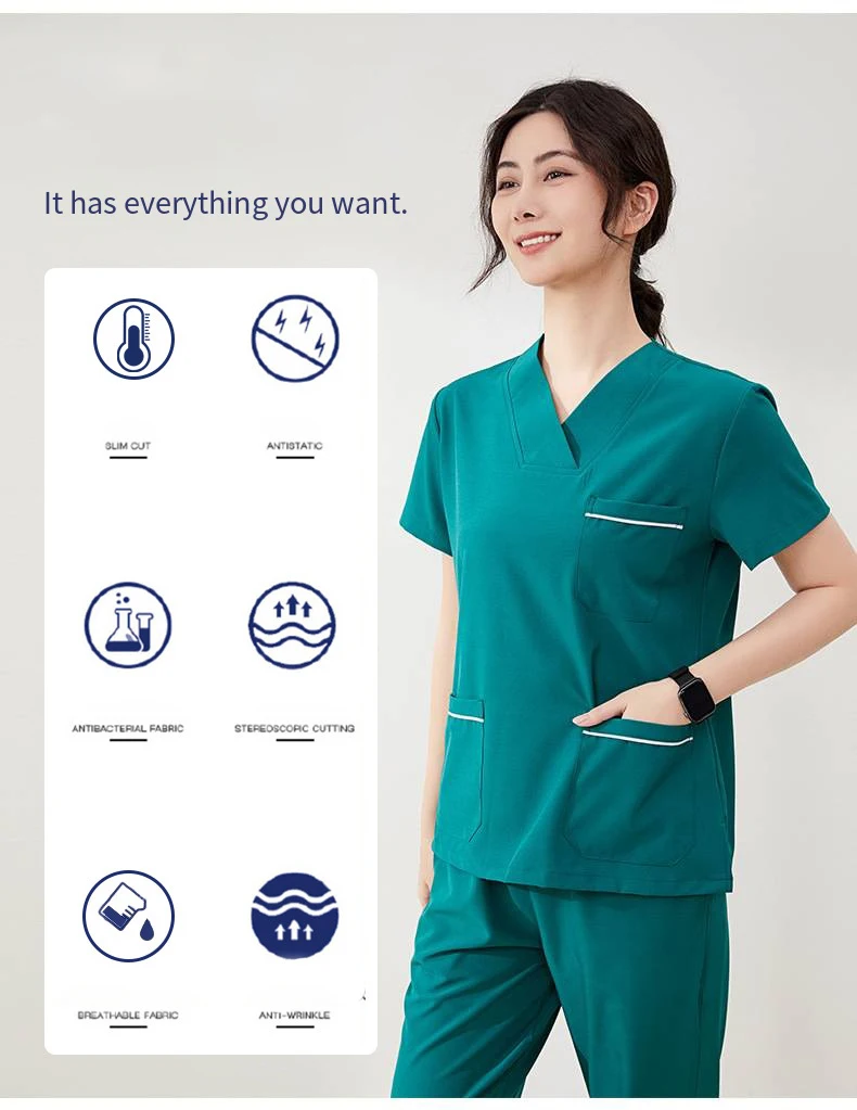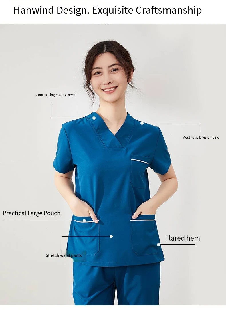 Scrubs Uniforms Wholesale Fashion Stretchable V-neck Style Nursing Uniforms Hospital Medical Scrubs Uniforms Sets for Women